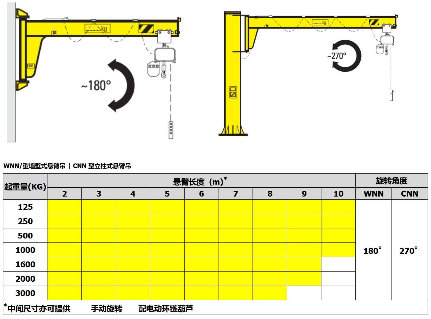 - Detailed jib length and lifting weight grading to precisely meet specific requirements