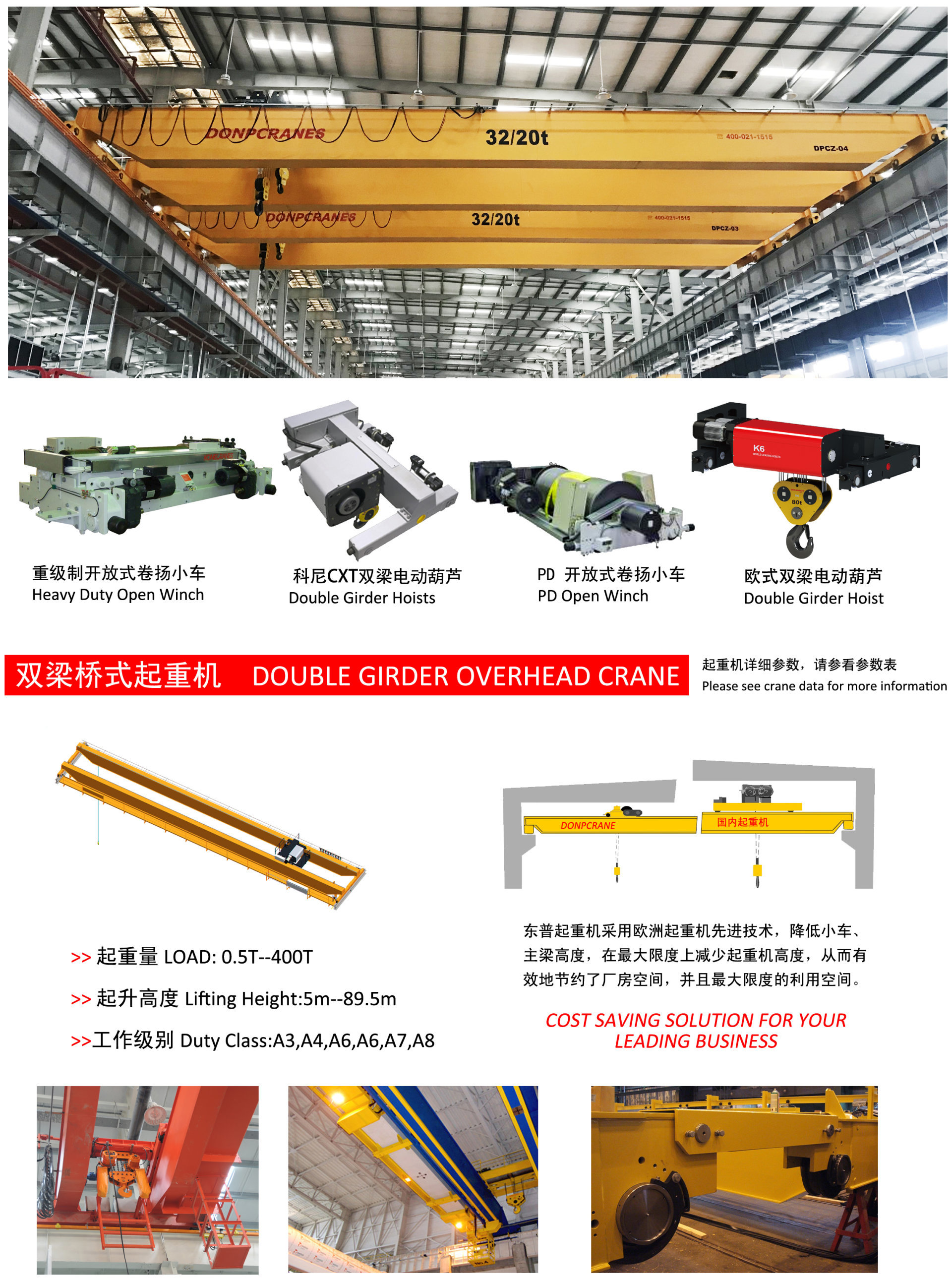 In general Optimazed designing, DIN/FEM standard, smaller wheel load, space saving Max. Safe working load 80t Flexible solution for all lifting needs Excellent driving properties, stepless control, smoothly moving